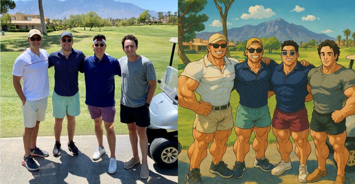 I used the viral Studio Ghilbi request once more — only this time I asked ChatGPT to make all of us extremely muscular.