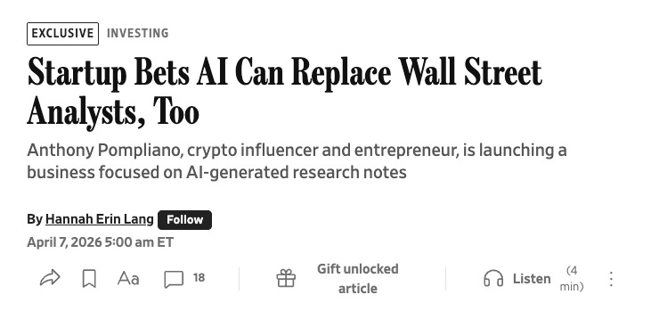 I’m joining Anthony Pompliano to build Wall Street’s first agentic AI research shop, ProCap Insights.