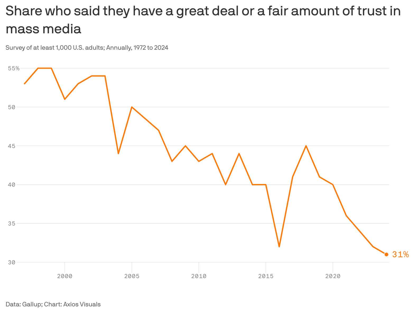 It’s no wonder that Americans’ trust in media has declined from 55% to 31% over the last two decades.