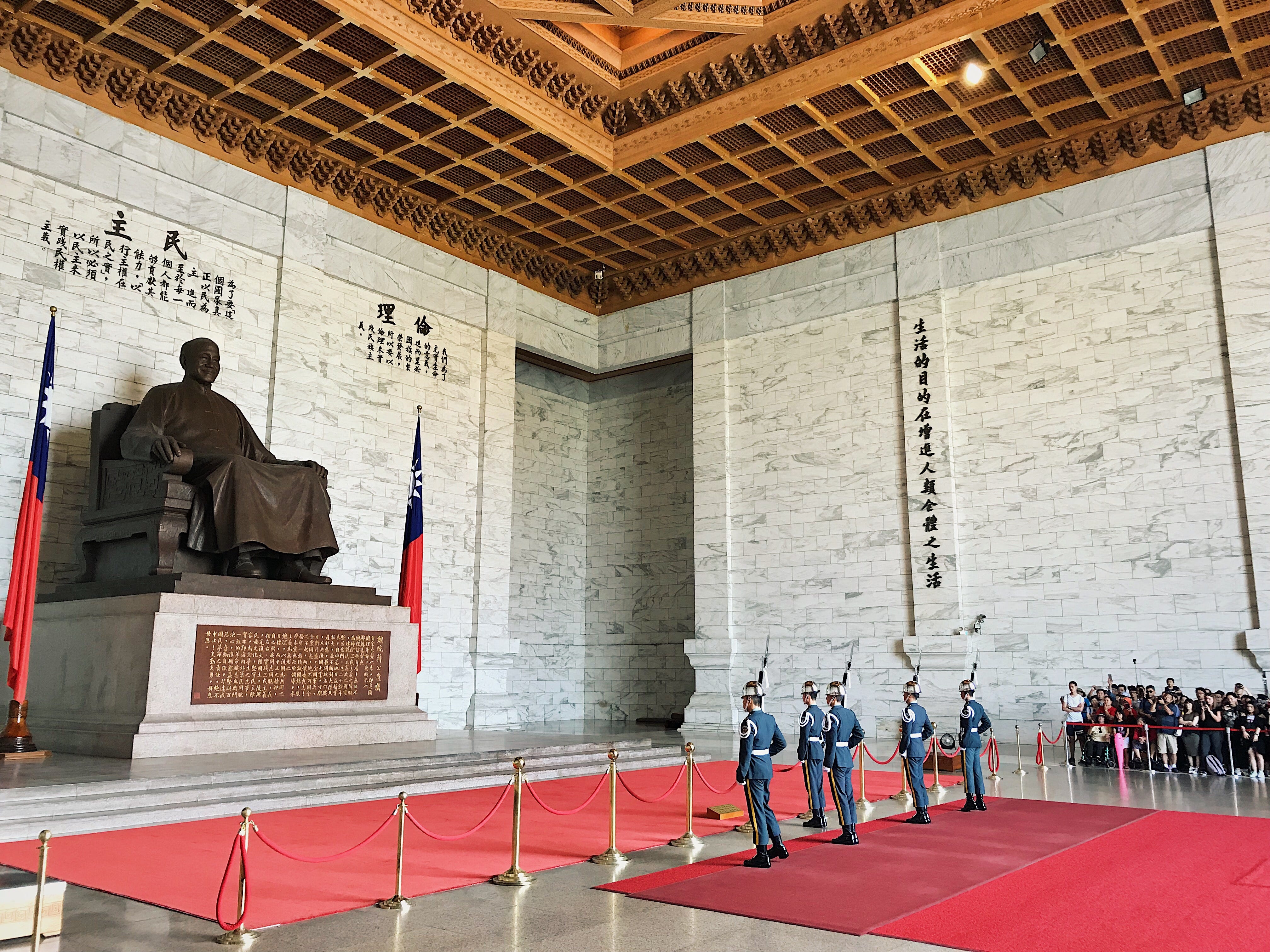 The Chiang Kai-Shek Memorial symbolizes a piece of Taiwan’s shared history with China. The monument commemorates the former President of the Republic of China, who is depicted as grand and imposing and important, seated upon a throne much like Abraham Lincoln in the Lincoln Memorial of Washington DC. At the foot of the statue, there are two armed guards. At the turn of each hour, hundreds of spectators pour in to witness the changing of the guards ceremony (which is also much like the ceremony of the same name at the Tomb of the Unknown Soldier in Arlington, Virginia USA).