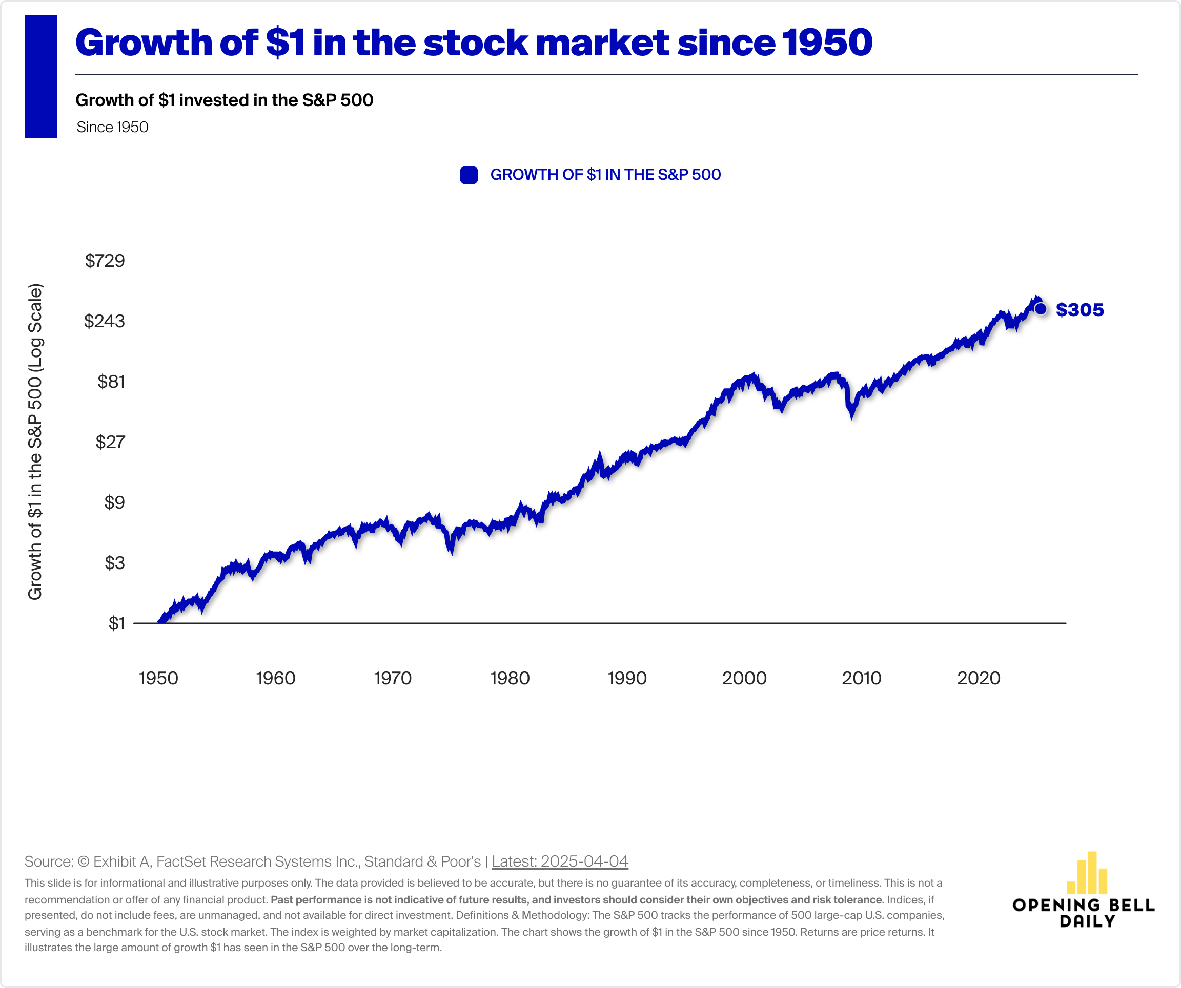A single dollar investing in the boring S&P 500 in 1950 is now worth over $300.